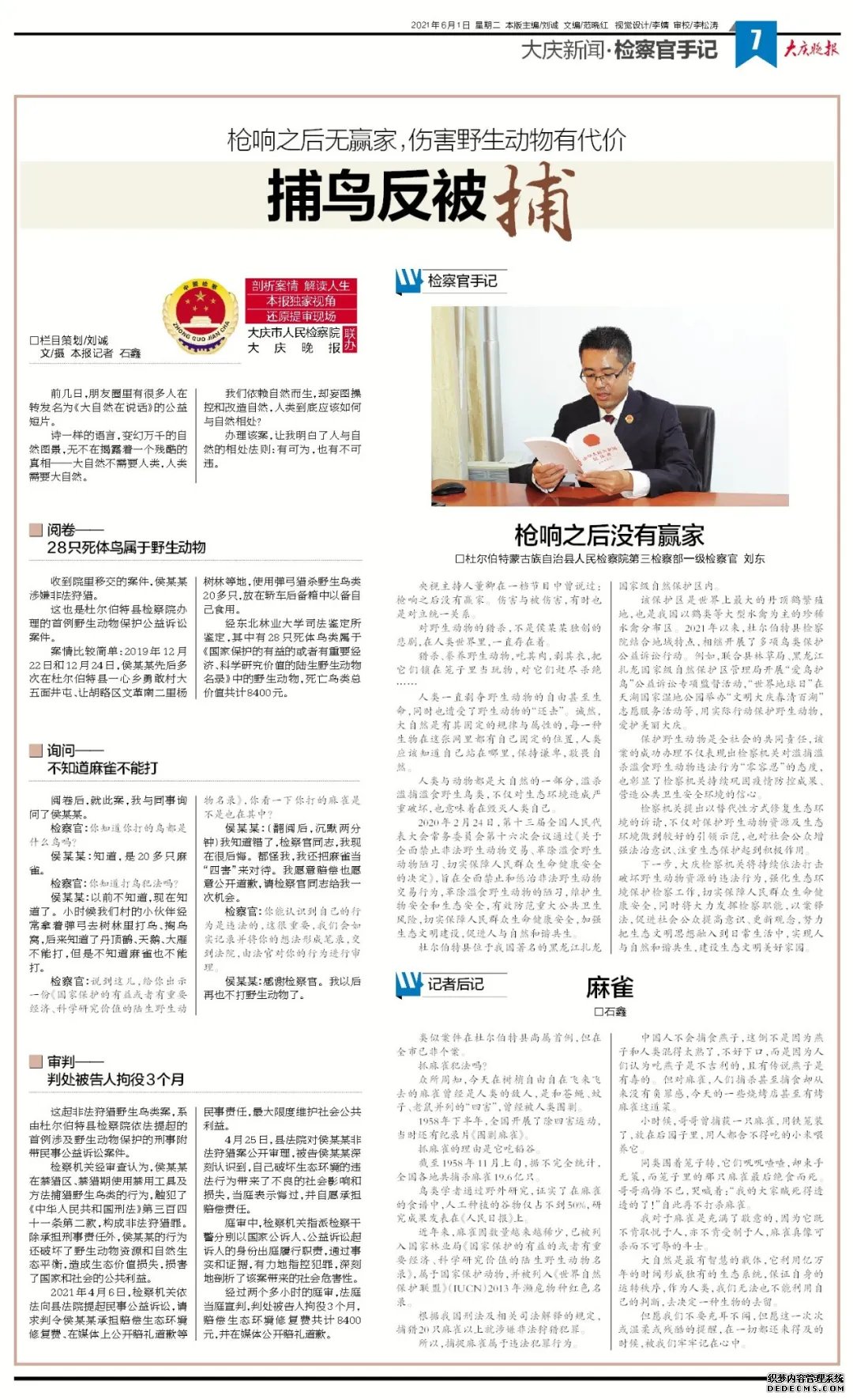 【媒体看检察】大庆晚报 • 检察官手记丨枪响之后无赢家,伤害野生动物有代价—捕鸟反被捕